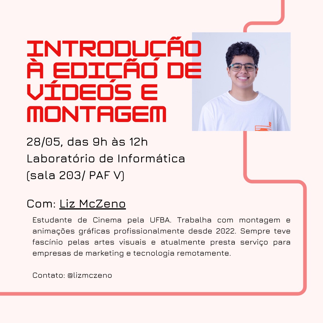 • Oficina “Introdução à Edição de Vídeos e Montagem”, com Liz Mczeno